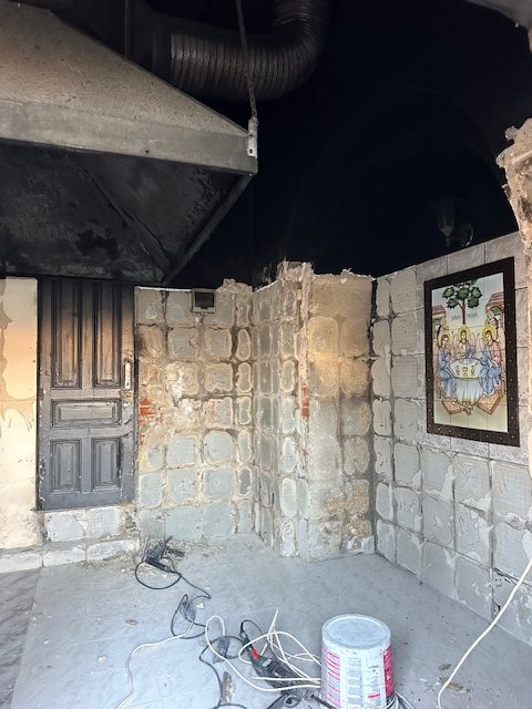 Amenajat în urmă cu peste 20 de ani, spațiul respectiv s-a degradat, astfel că pereții au fost decopertați și retencuiți, pavimentul și instalația electrică refăcute integral, hotele, tăvile pentru punerea lumânărilor și candelelor au fost confecționate din inox, sistemul de aerisire fiind, de asemenea, înlocuit. Totodată, pentru stoparea igrasiei, au fost efectuate săpături în jurul fundației, pereții acesteia fiind protejați cu materiale izolante și pietriș.