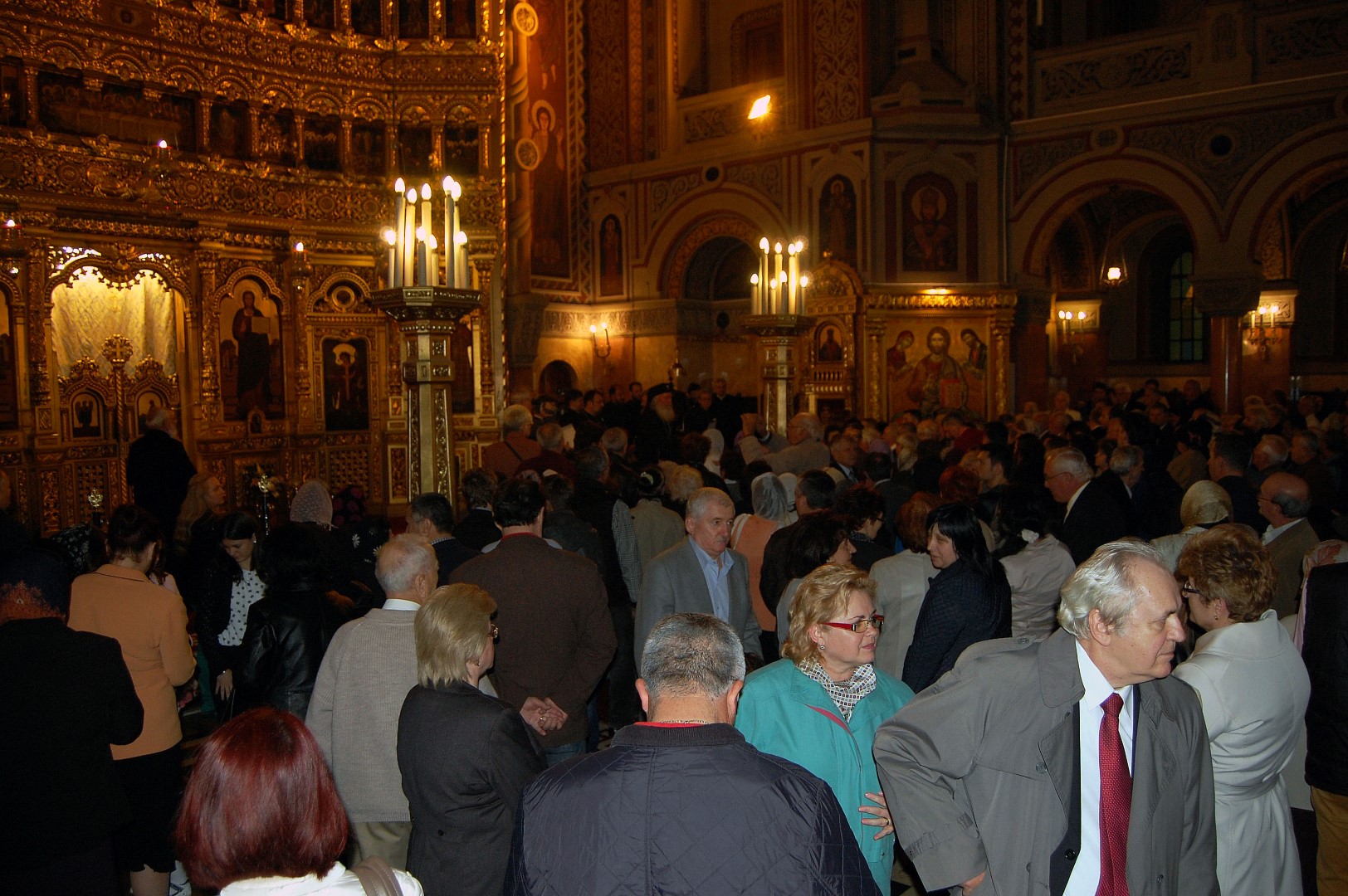 DSC_0397 (Large)În Duminica a III-a după Sfintele Paști, a Mironosițelor, Înaltpreasfințitul Părinte Ioan, Arhiepiscopul Timișoarei și Mitropolitul Banatului a oficiat Sfânta Liturghie la catedrala mitropolitană din Timișoara alături de un ales sobor de preoți și diaconi. Pericopa evanghelică a duminicii a fost explicată de către Părintele Mitropolit Ioan, care a spus: „Pentru credința nestrămutată a femeilor mironosițe, Hristos le-a dat prima bucurie adevărată pe pământ, prin acest cuvânt: Bucurați-vă! Deschiderea mormântului în care a fost pus Domnul arată că ni s-a deschis şi nouă uşa, pentru a putea intra în Împărăţia lui Dumnezeu, Împărăţia celor vii, pentru a intra la Cina marelui ospăţ al Mirelui Hristos, biruitorul iadului şi al morţii”.