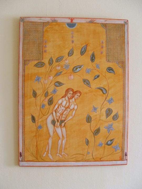 Doua piese au dimensiunea de 80/60, pe blat de material lemnos, prima având ca titlu „Adam și Eva alungați din Rai”, a doua se numește „Adam lucrând pământul”. Faptul că au ieșit din ascultare gustând mărul din Pomul Cunoașterii Binelui și Răului i-a adus pe primii oameni creați de Dumnezeu pe Pământ, unde prin trudă au trebuit să-și câștige existența și pâinea cea de toate zilele. Am încercat să spun că mila Domnului a făcut ca odată cu ei să lase să treacă din Rai pe Pământ și albina. Albina truditoare care întreține viața.