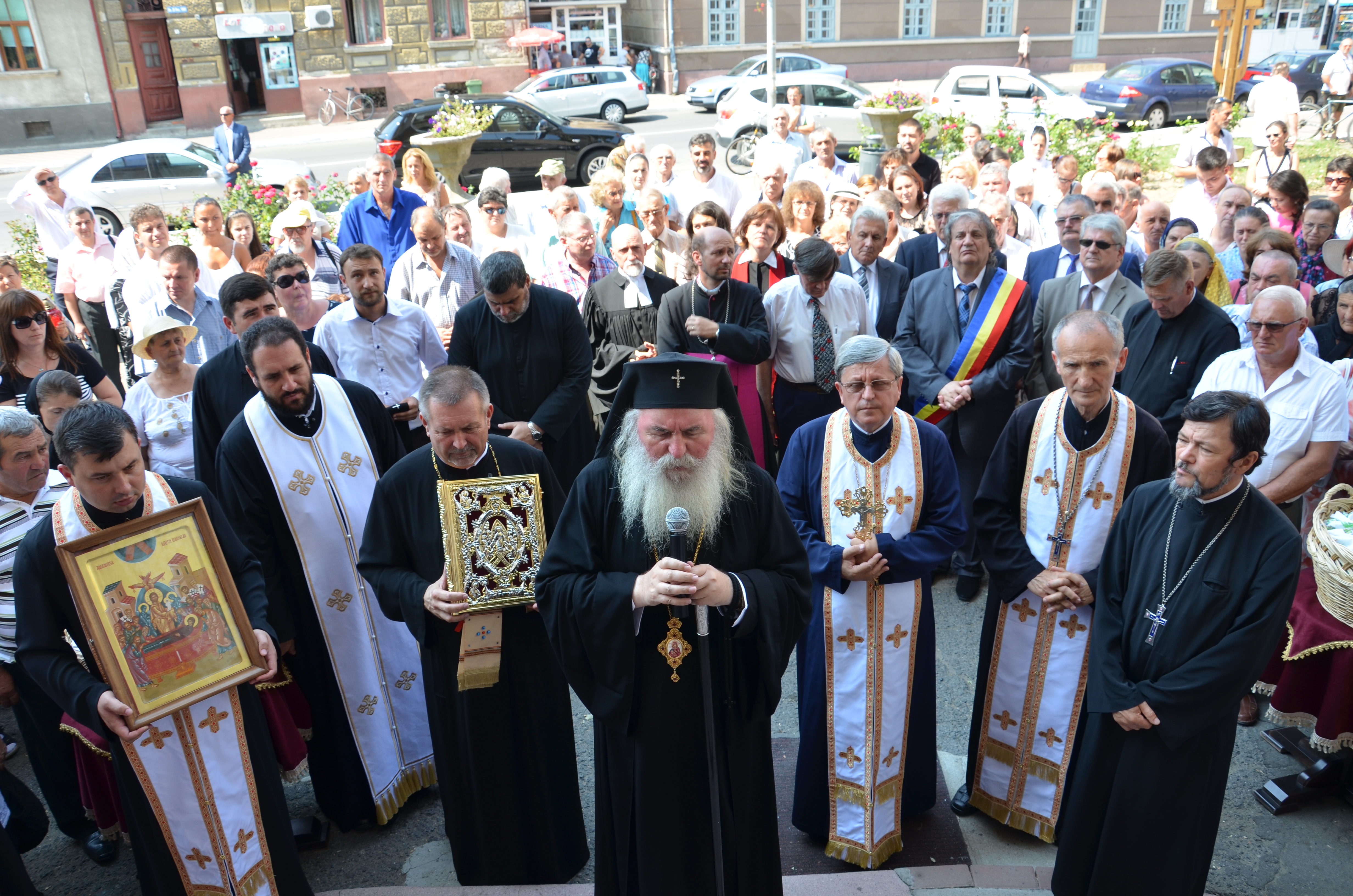 Astăzi, 15 august, biserica parohiei ”Adormirea Maicii Domnului” din Lugoj și-a prăznuit hramul. Sărbătoarea a fost încununată de prezența în mijlocul credincioșilor lugojeni a Înaltpreasfințitului Părinte Ioan, Arhiepiscopul Timișoarei și Mitropolitul Banatului. Chiriarhul Banatului a fost întâmpinat în mod tradițional de soborul slujitorilor şi al enoriaşilor acestei parohii, condus de pr. paroh Ioan Cerbu, Protopopul Lugojului. În continuare Înaltpreasfinția Sa a săvârşit Sfânta şi Dumnezeiasca Liturghie, înconjurat de un sobor de preoţi şi diaconi condus de pr. Ionel Popescu, vicar-eparhial al Arhiepiscopiei Timişoarei.